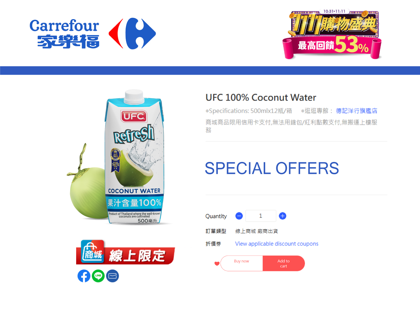 UFC Refresh Coconut water- iTQi Superior Taste Award